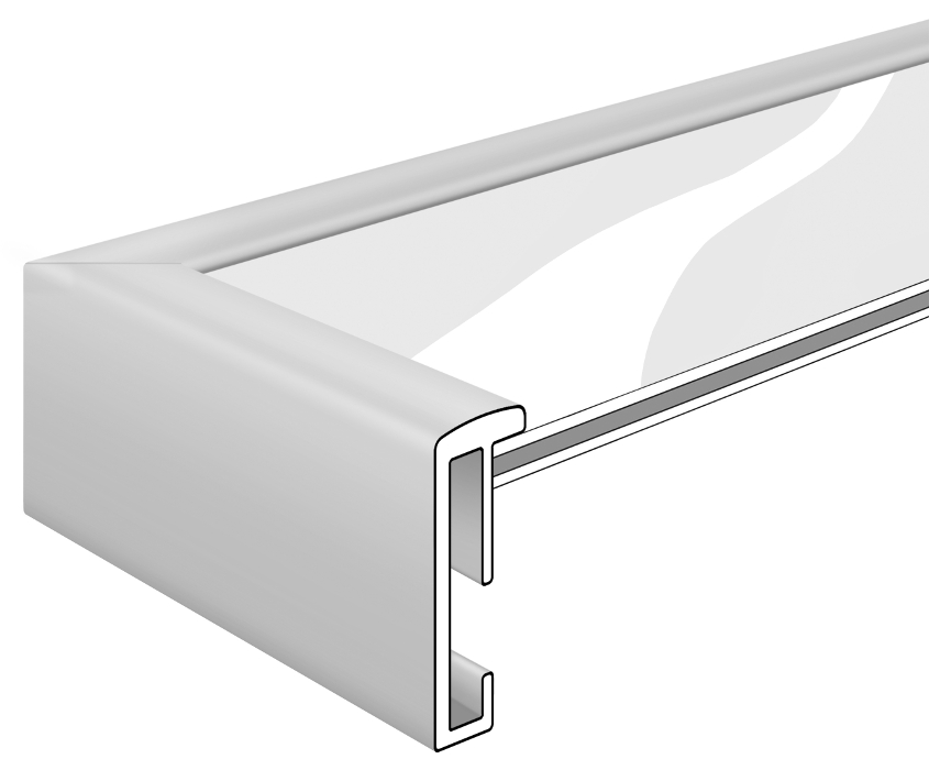 Der Alu Bilderrahmen Duisburg vom Qualitätshersteller DEHA Design hat ein abgerundetes Profil mit einer Breite von 9 mm.