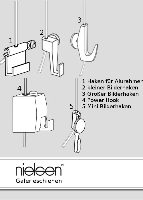 Die Bilderhaken von Nielsen für die Galerieschienen gibt es hier in 5 Variationen zu kaufen. Bilderhaken für Aluminium, mini, kleine, große oder ganz große (Power Hook) Bilderrahmen lassen sich leicht und bequem für die Galerieschiene von Nielsen bestellen.