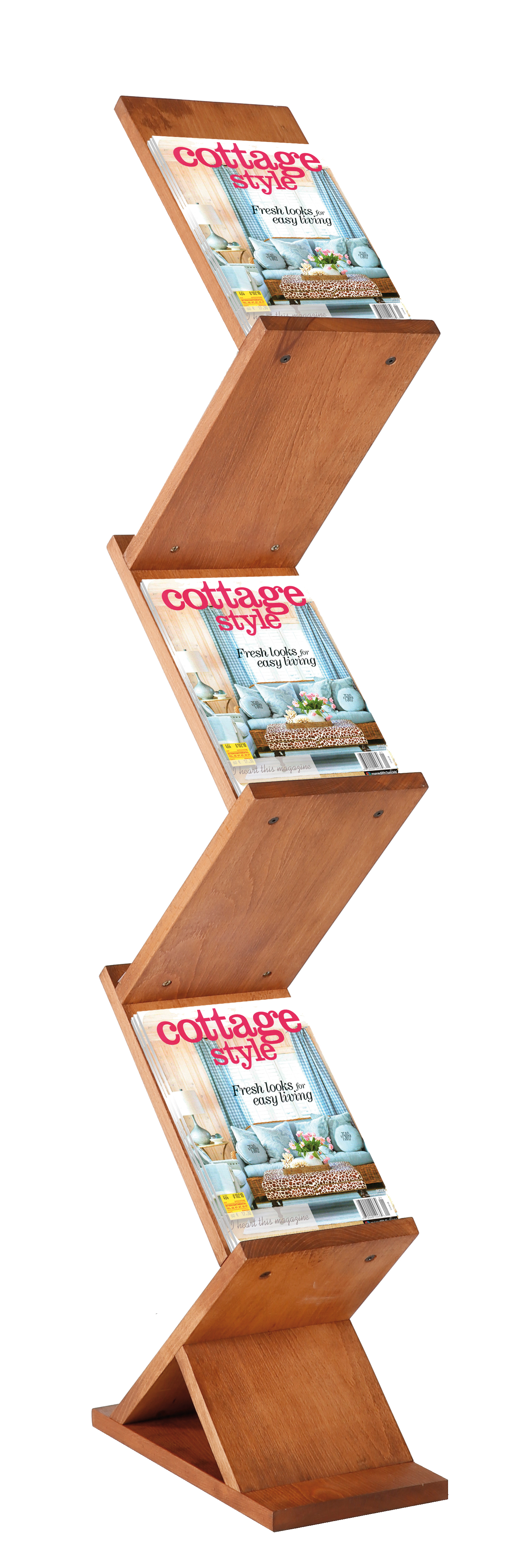 Boden Prospektständer Wood Zick Zack, 5 x DIN A4, dunkles Holz