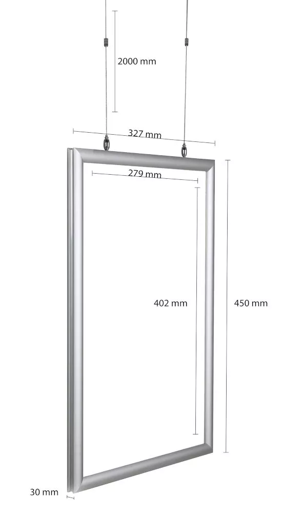 Unser silberner Doppelseitiger klapprahmen ist ideal für Deckenaufhängung im Schaufenster. Poster sind von beiden Seiten sichtbar.