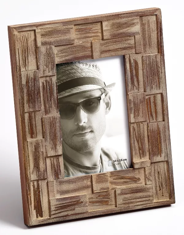 Der Holz-Portaitrahmen Liam hat ein breites Profil mit Flechtoptik in drei Farben. Er rahmt ihre Fotos und Bilder stilvoll und elegant. Der Rahmen Liam von der Bilderrahmenmarke Walther kommt mit einer MDF Rückwand, Aufsteller.