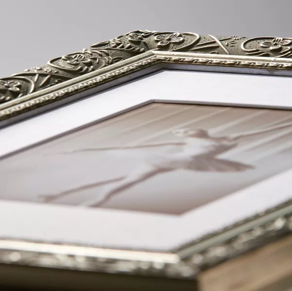 Der 40 mm breite Holzrahmen Barock hat ein mit Blumen verziertes Barock-Profil und ist in Schwarz, Weiß oder Anthrazit erhältlich. Der Holzrahmen rahmt ihre Bilder stilvoll und elegant. Der Rahmen Barock von der Bilderrahmenmarke Walther kommt bis zur Größe 20 x 30 cm mit Aufsteller und ab 40 x 50 cm mit Galerieaufhängung.