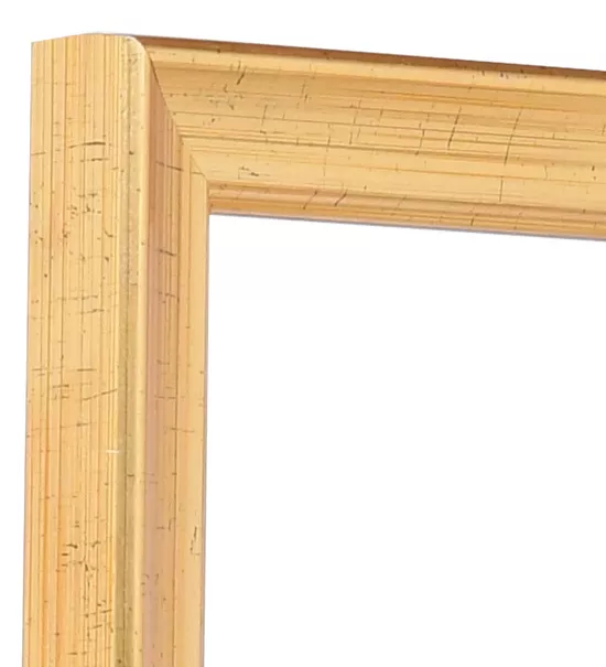 Die Massivholzleiste wird nicht einfach lackiert, sondern mit einer hochwertigen Metallic-Folie kaschiert. Das sorgt für eine besonders gleichmäßige Oberfläche mit feinem Schimmer – ideal für eine stilvolle Präsentation Ihrer Bilder.