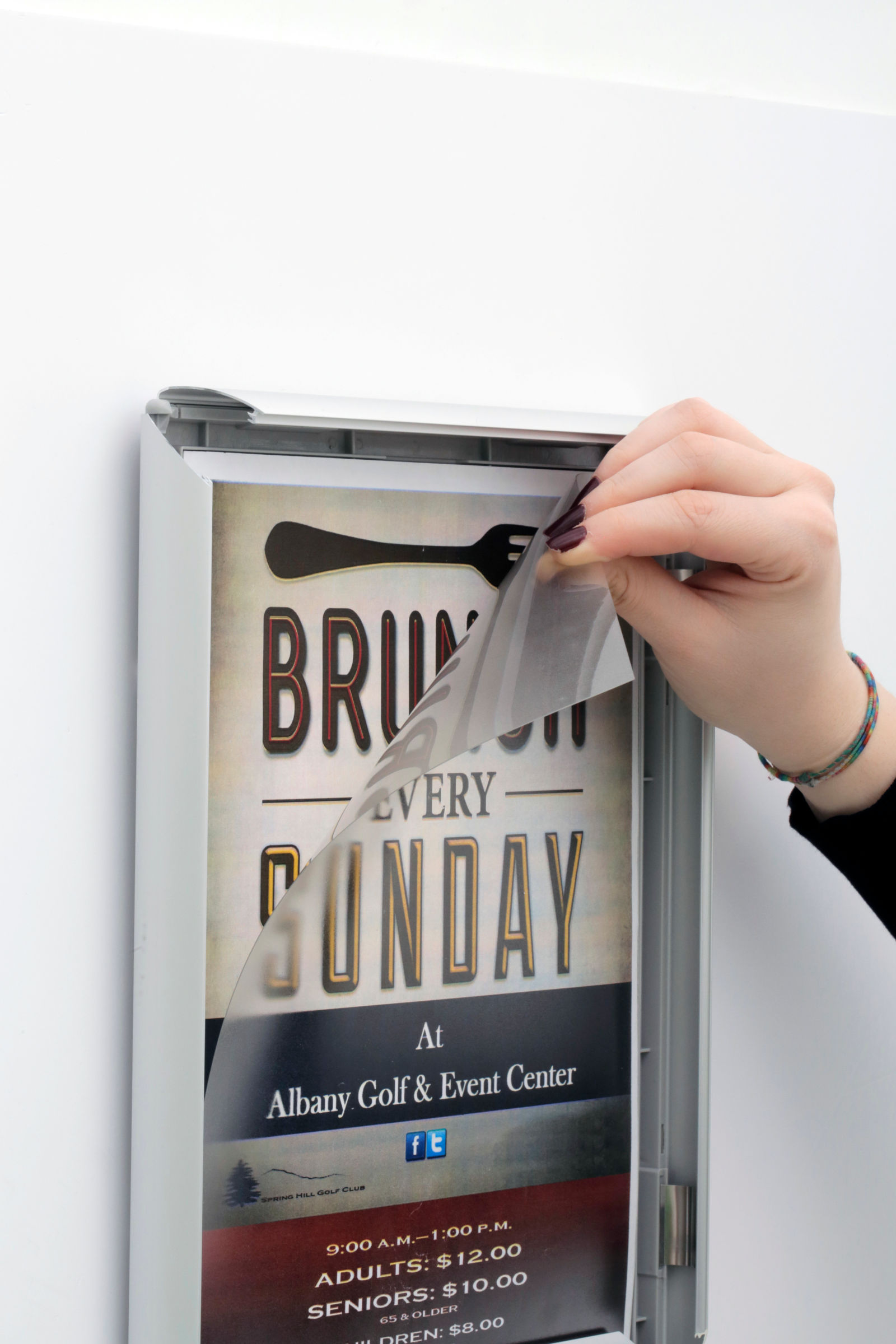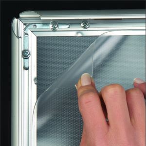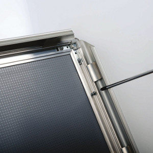 Mit dem stilvollen, silber eloxierten Aluminium-Klapprahmen 25mm wird der Austausch der Plakate schnell und ohne Mühe erledigt. Einfach die Aluminium-Profile aufklappen, das Plakat wechseln, Profile zuklappen und fertig!