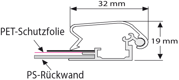 Eigenschaften "Klapprahmen Profil 32 in 29,7 x 42,0 cm / DIN A3 Gehrung"